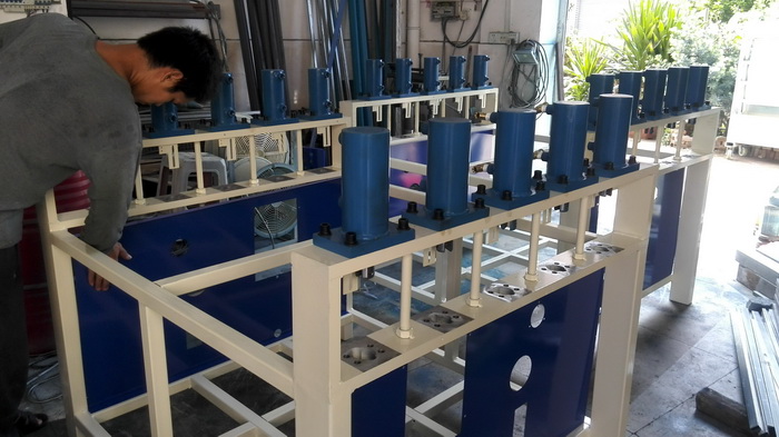 我司研發、生產的不銹鋼門花高速液壓沖孔機有6工位2人操作、10工位2或4人操作、12工位2人或4人操作,可以根據廠家要求定做,可以同時安裝6~12套模具,相當于6~12臺普通沖床,設備采購費用低,占用的空間小,模具安裝調試簡易,大幅度降低了門花生產廠家的設備采購與生產成本,提高競爭力。