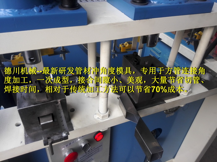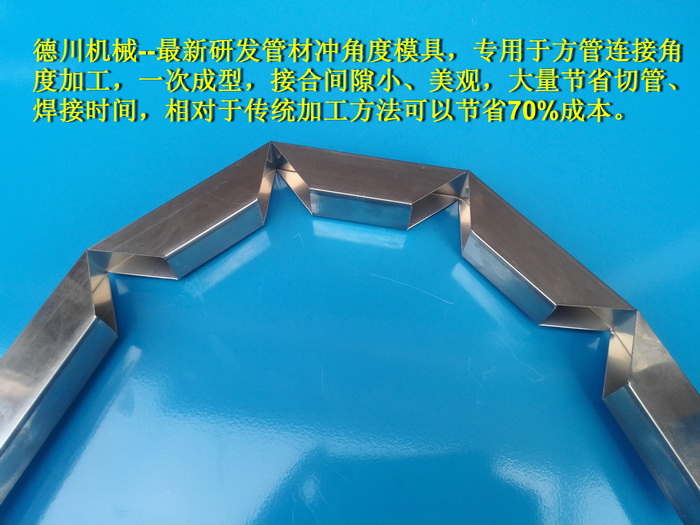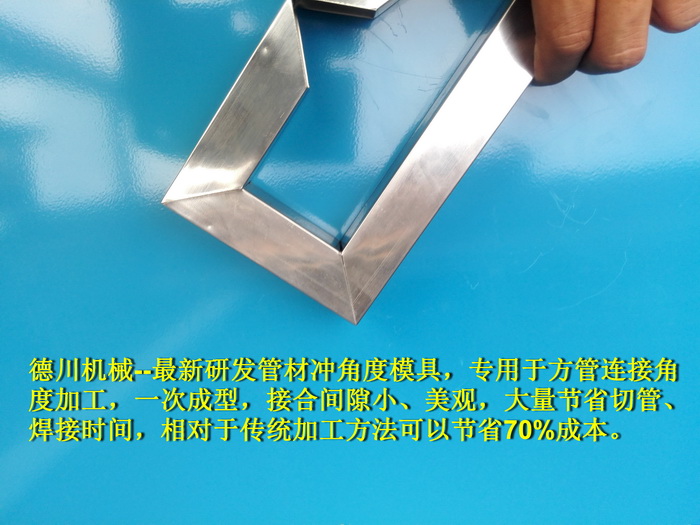 德川機械--最新研發管材沖角度模具,專用于方管連接角度加工,一次成型,接合間隙小、美觀,大量節省切管、焊接時間,相對于傳統加工方法可以節省70%成本。...