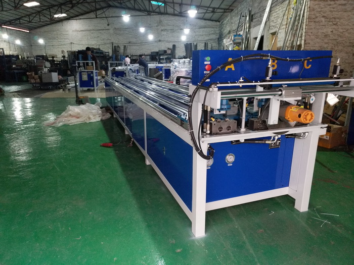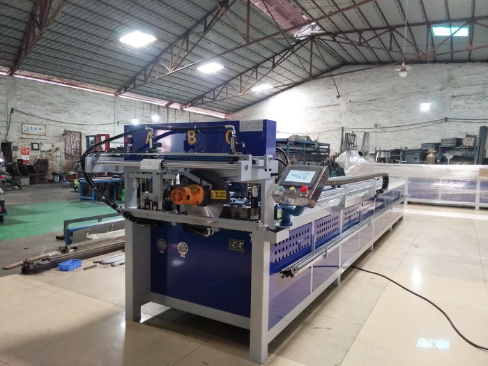 三工位數控全自動沖孔、切料機,三工位同時工作,一次沖6支管,每個油缸可單獨控制沖全孔、半孔,大大提高不銹鋼防盜網沖孔效率,行業首創,專利產品...