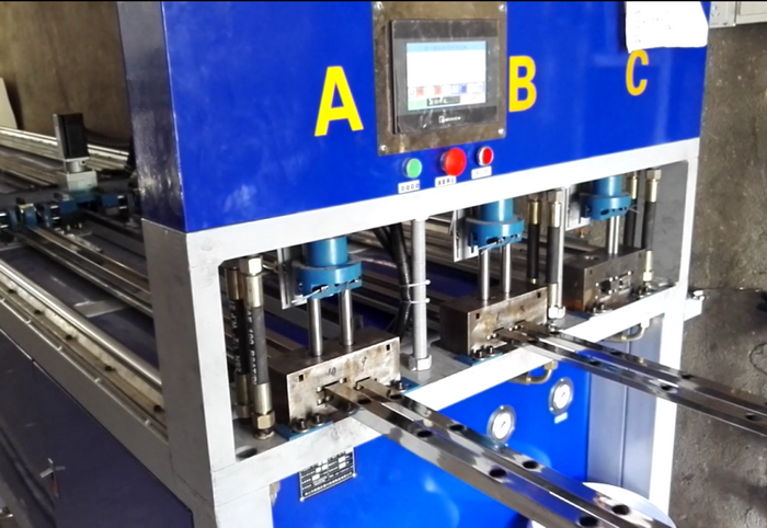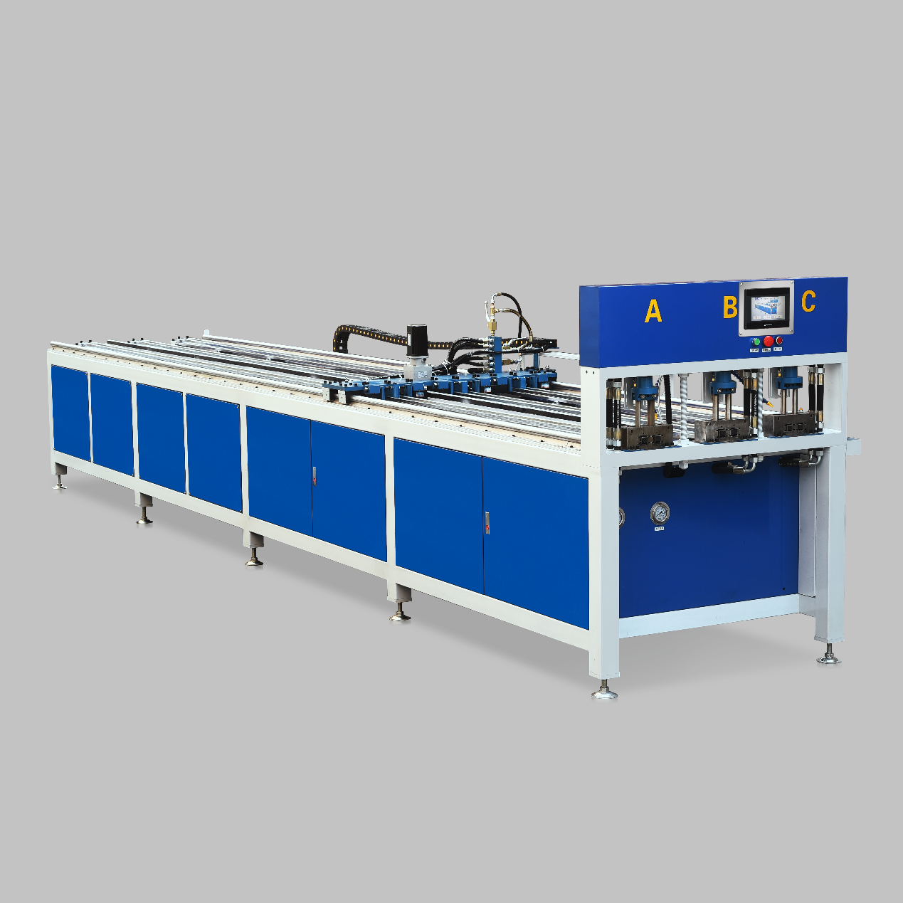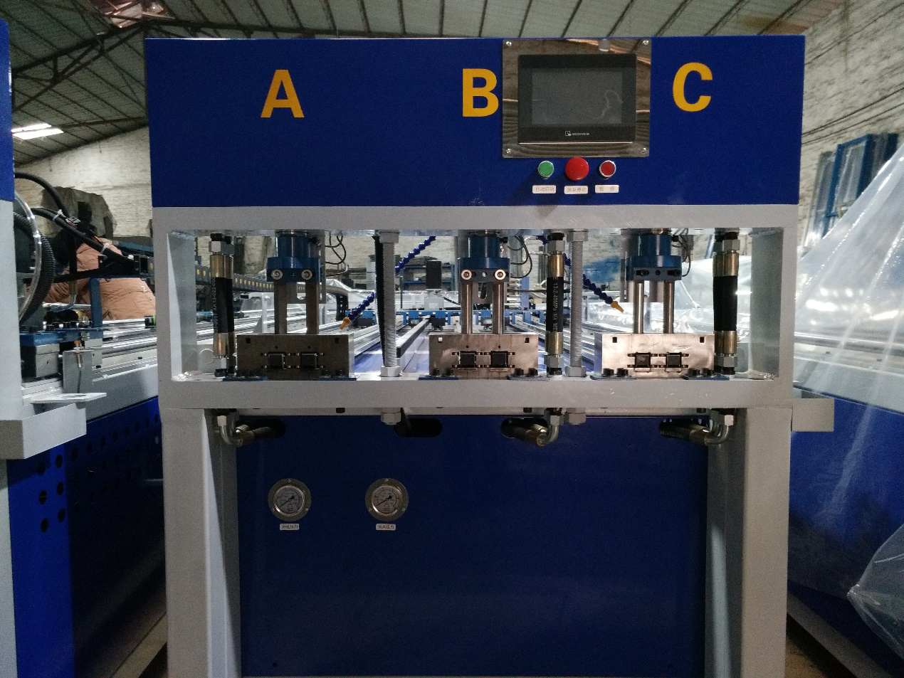 三工位數控全自動沖孔機,人性化人機交互操作界面,伺服系統控制精度高,三工位同時工作,每個油缸可單獨控制沖全孔、半孔,大大提高沖孔效率。