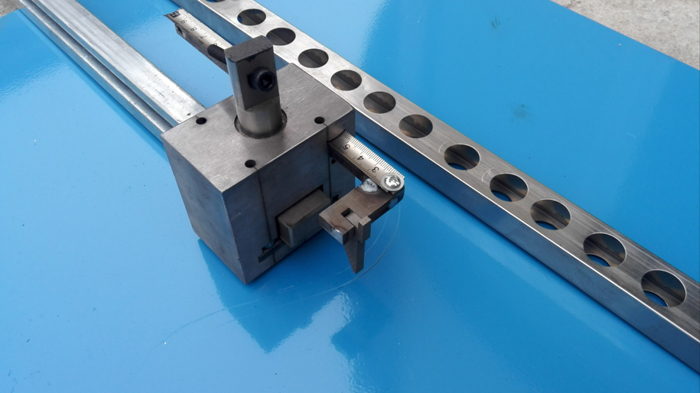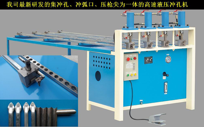 6、模具自帶刻度尺定位桿,沖孔不需要畫線,可以任意調(diào)節(jié)孔距,任意調(diào)節(jié)沖單面孔或沖穿孔,可沖圓管、方管;一天可沖管材300條或防盜網(wǎng)400~500平方;