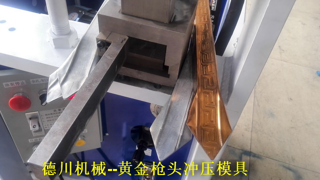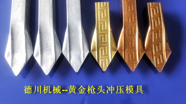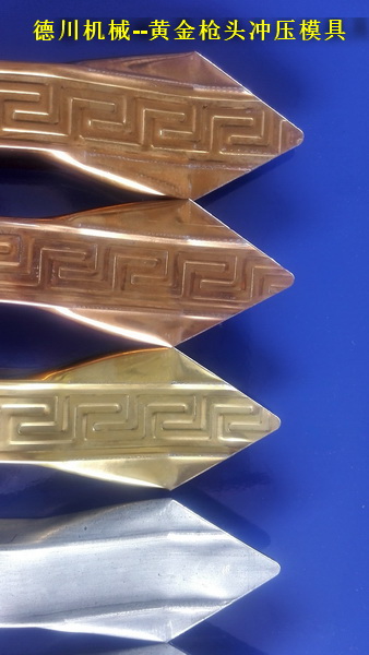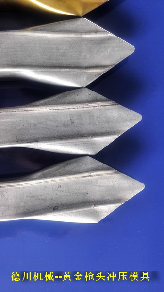 黃金槍頭沖壓模具,一次成型,廢料自動排出,無需人工排出廢料,效率高、操作安全,模具安裝簡易,可以任意調節沖不同規格的管。